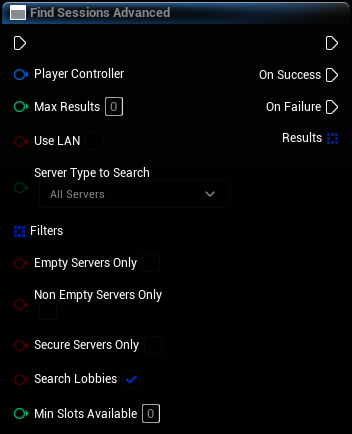 Searches for advertised sessions with the default online subsystem and includes an array of filters